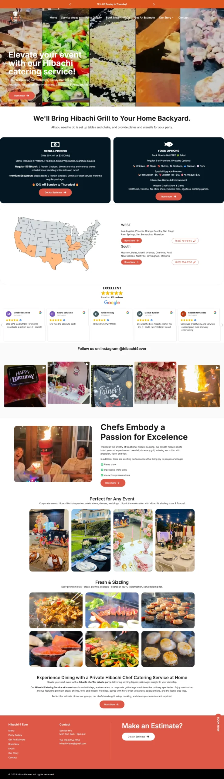 The Hibachi 4 Ever website is more than just a booking tool—it’s a lead-generation machine. From visual storytelling and regional targeting to clear pricing and social proof, every element is designed for performance.